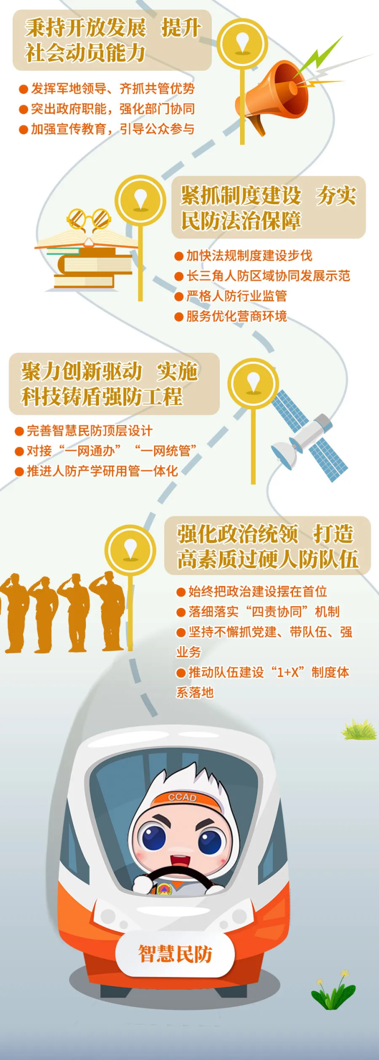深化改革创新,融入“放管服”改革,改进行政审批,推进“一网通办”,规范事中事后监管,出台15条举措,助力优化营商环境。加强“智慧民防”顶层设计,形成人防信息化建设总体方案,对接“城市大脑”,推进数据整合、共享应用。