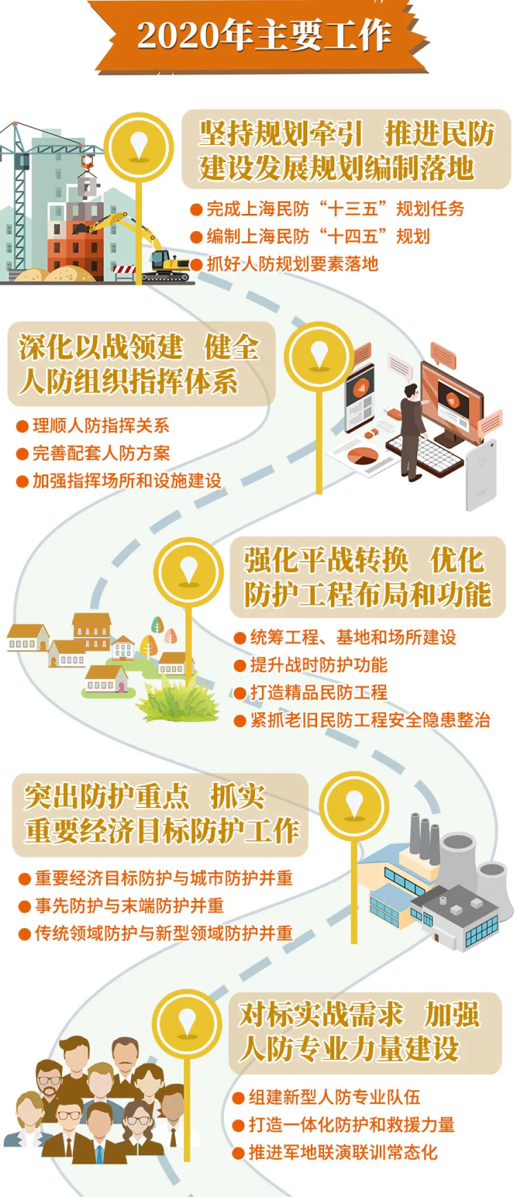 市民防办主任钟杰在会上作工作报告时表示,2020年,上海人民防空工作坚持“战备为先、防空为要”,融入经济社会发展、融入城市基础建设、融入城市应急管理,推进上海超大型城市人民防空治理体系和治理能力现代化,加快构筑强大巩固的现代化人民防空体系,铸就坚不可摧的护民之盾。今年将主要做好9方面工作: