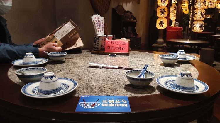 为了最大程度地避免人员聚集,采用一桌隔一桌的入座办法。