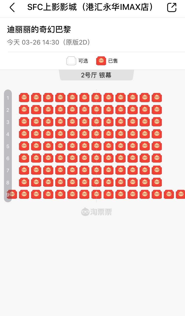 还有部分影院并没有安排显示几部影片的排片,仅拍出一场电影的放映,点进去则是满座。一般这种情况都是影院在测试系统。