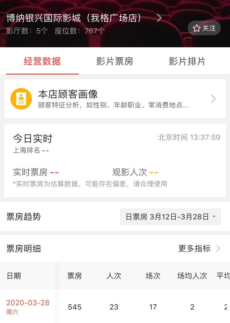 尽管排在第一位,但目前仅售出23人次的电影票,票房为545元。