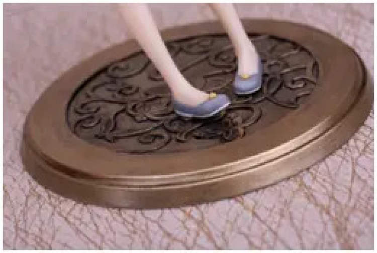 另外,他们做了一些契合手办群体的变化,尤其是脸部,把嘴变成了樱桃小嘴。他们觉得最特别的是超多细节纹样镂空裙以及底座设计,后者专门用了做旧与土灰效果,“展现国宝拟人穿越时空后,来到现代世界的最初状态。”