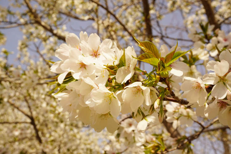 据了解,世纪公园樱花岛上种有樱花树近1000余株,其中90%是先花后叶的中国樱花品种,花瓣单层,花色有的是淡淡的粉,有的是如雪的白。