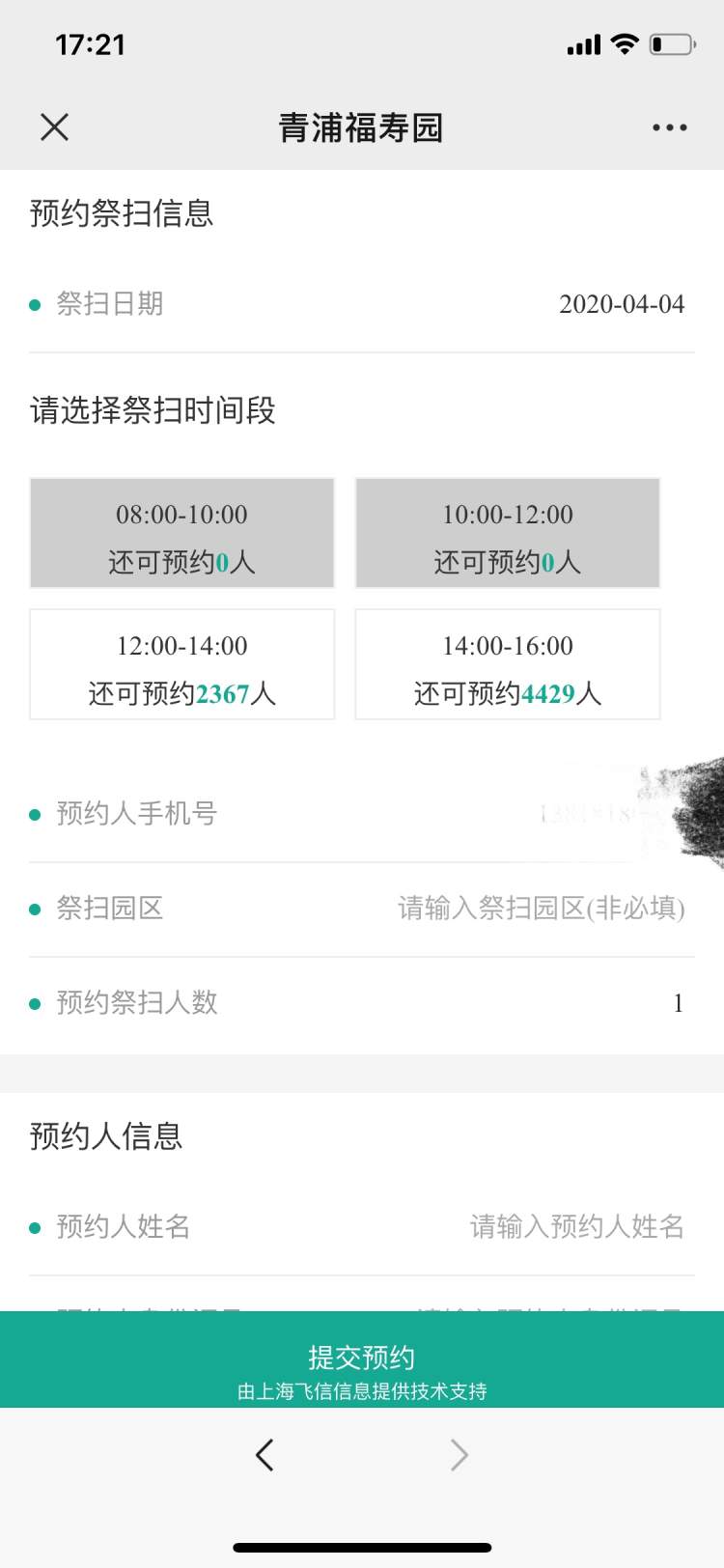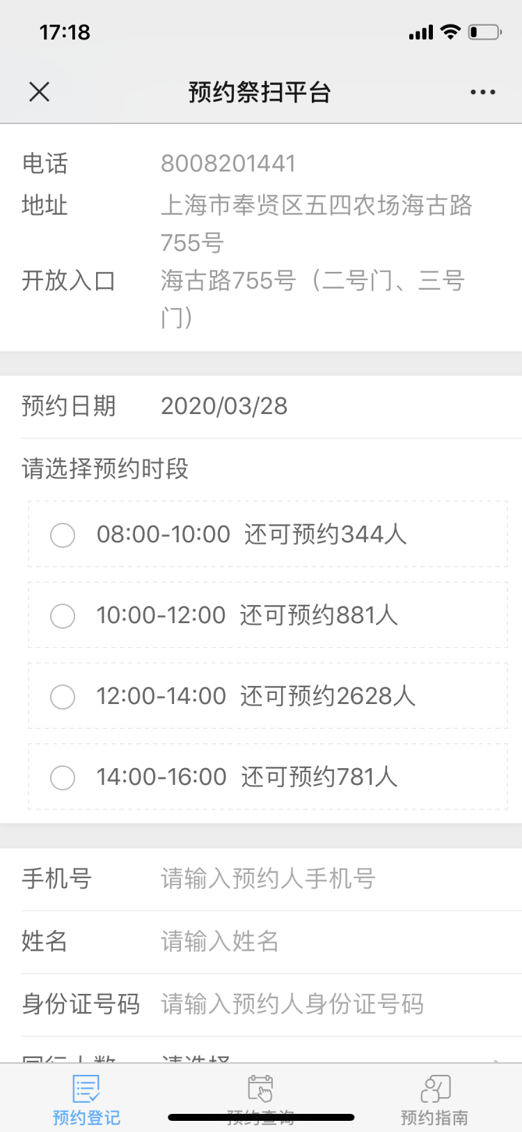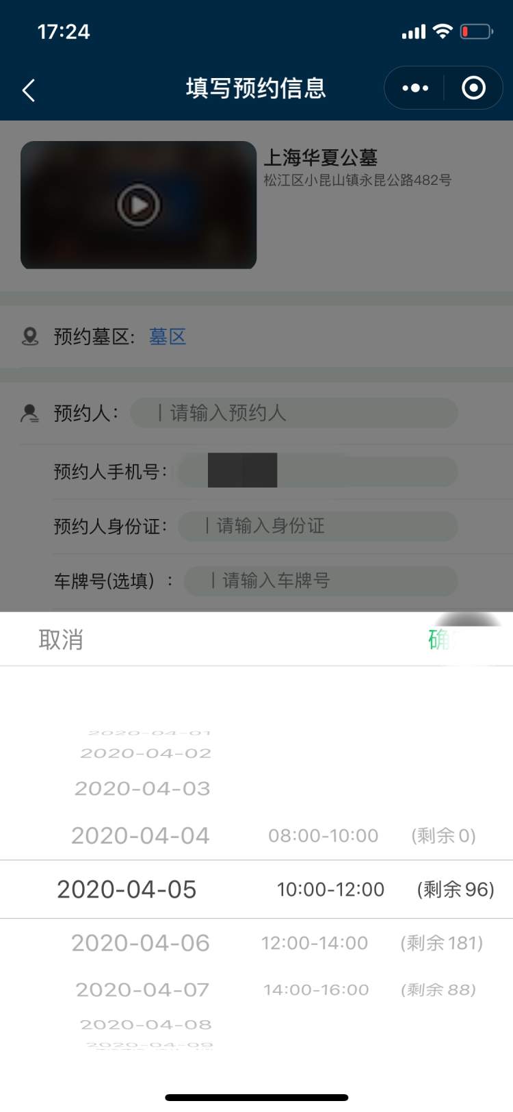 今天一早八点,本市54家公墓(骨灰堂)同步开通网上预约,共提供3月28日至4月12日共64个时间段(每天4个时间段)供市民预约。