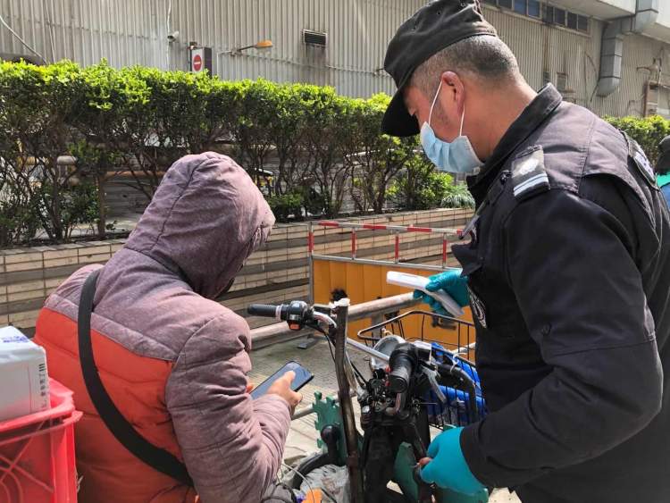小区的保安大叔告诉记者,外卖快递进入小区的通知是居民区所属曹杨新村街道统一下发的。和该通知一起的,还有小区电子通行证申请须知。快递外卖初次进入小区也需要扫二维码登记,之后,进出小区只要扫一下二维码就会出来相关信息。“进出小区,我们会检查一下他们是否登记过,登记过,只要出示绿色随申码就行。没登记过,我们就让他们直接在门口扫码登记。”