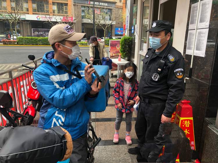 但这一做法到昨天有了新的变化。”现在我们允许外卖进小区了,但是不能上楼。“华磊解释道,因为小区每个楼宇下都有大堂,因此,他们将置于小区门外的外卖摆放架移置每栋楼宇的大堂内,且有楼宇保安看管。外卖送到后,致电居民自己下楼来拿,也做到了无接触配送。”