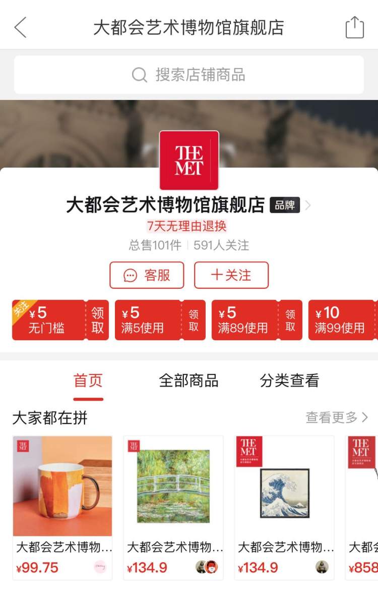150岁的大都会艺术博物馆店铺登陆拼多多