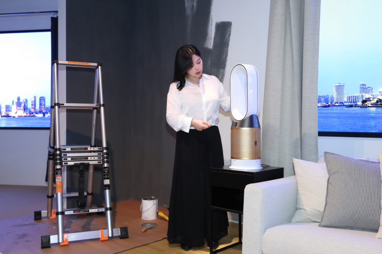 戴森工程师在Dyson Pure Cryptomic™ 空气净化风扇新品发布现场的真实家居环境场景