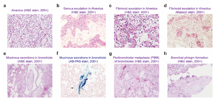 研究团队发现,新冠肺炎病理改变最大的受累脏器是肺,其表现为弥漫性肺损伤,包括广泛的渗出及出血,肺泡上皮的破坏和反应性增生,以巨噬细胞为主的炎症反应及纤维化。