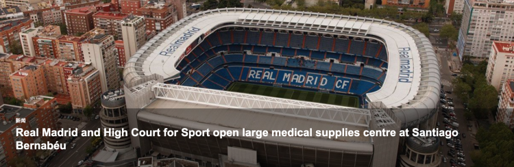 当此抗击疫情的关键时刻,西甲皇家马德里俱乐部昨日发布公告称将与体育高级委员会合作,共同对抗新冠疫情。首先,皇马俱乐部将会把马德里圣地亚哥·伯纳乌球场作为存放医疗捐赠品的仓库,借给西班牙卫生部门使用,该部门隶属于西班牙政府下。
