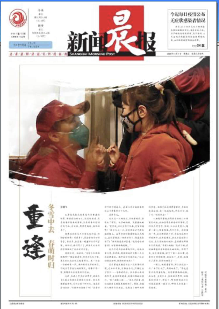 人潮像风筝般在隔离宾馆的门口向前或向后,我知道那是牵挂的风筝线,它的尽头有爸爸、妈妈、儿女或是爱人,隔着一道门,隔着玻璃,咫尺之间。在玻璃的一角,我仿佛看到了你,你在向我俩不停地挥手,我不能确定,但我本能地挤了过去,在头顶她的叫喊中,直到摸到那面巨大的玻璃,“你看!妈妈!”我放下她,看到她看着你身后的战友喊妈妈。你蹲下来,拍打着玻璃,摘下了第一层口罩,她看到了你的眼睛,她怔住了,是的,她确定了是你,是妈妈回来了……