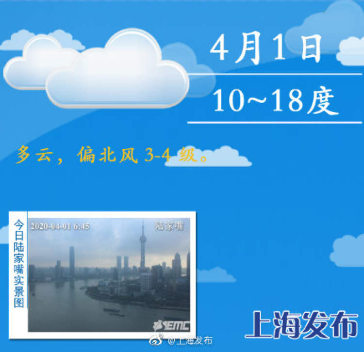 雨水暂停,阳光回归,今日气温10-18℃ 周到君 2020-4-01 来源:周到上海 上海今天多云,偏北风3-4级,最高温度18度,最低温度10℃。今天开始,雨水按下暂停键,阳光回归,直至4月5日前期,本市不会有雨水打扰。不过,清明节后期降水再度归来,细雨纷纷落申城,古诗有云:“清明时节雨纷纷”,看来天气也着实应景。未来天气虽有变化,但气温没有大起大落,比较平稳,最低气温维持10-11℃,最高气温在15-19℃之间。时值春季,早晚春寒依旧在,添衣保暖不可少。 来源:周到上海 作者:周到君 赞一个 (0)