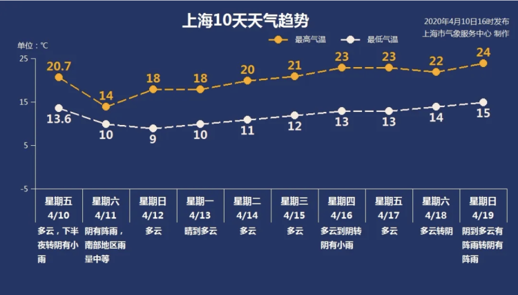 周日白天申城的气温就会回升到18℃左右,早晨依然比较冷,最低在9℃左右。