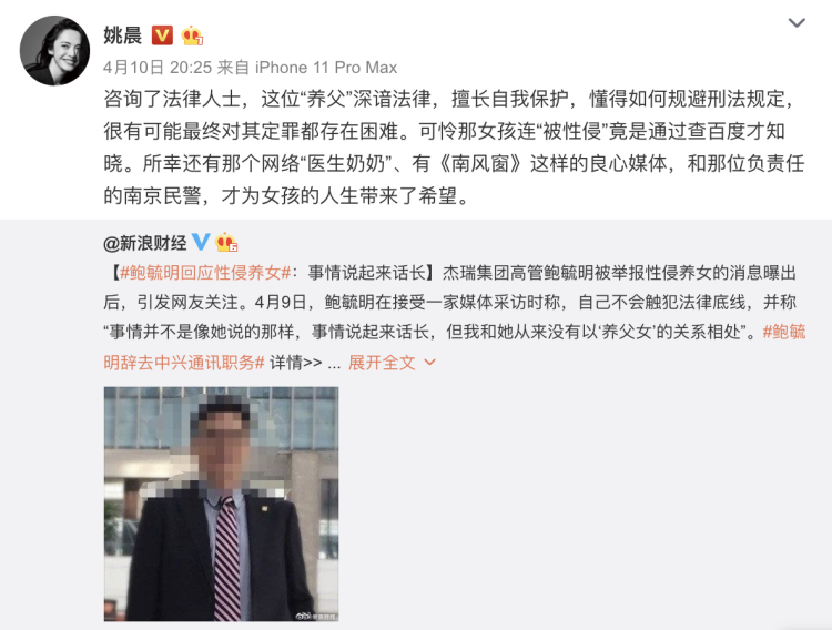 近日,上市公司高管鲍毓明被曝性侵未成年“养女”小兰一案受到广泛关注。