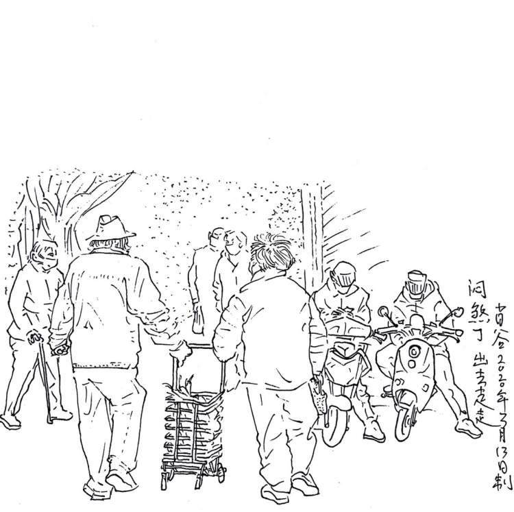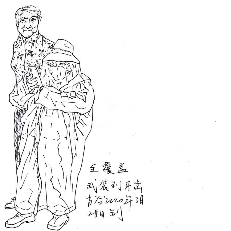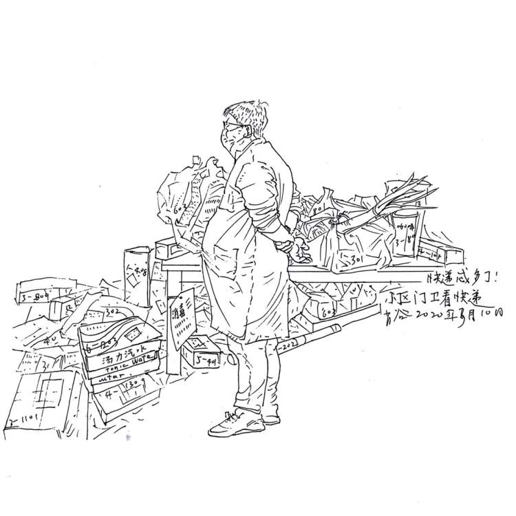 但是不同于那种参加抗击疫情展览的作品,肖谷的疫情速记是用平凡人的视角,记录平凡人的生活,这些平凡人的身上优点、缺点都有,但惟其如此,作品才是鲜活的。