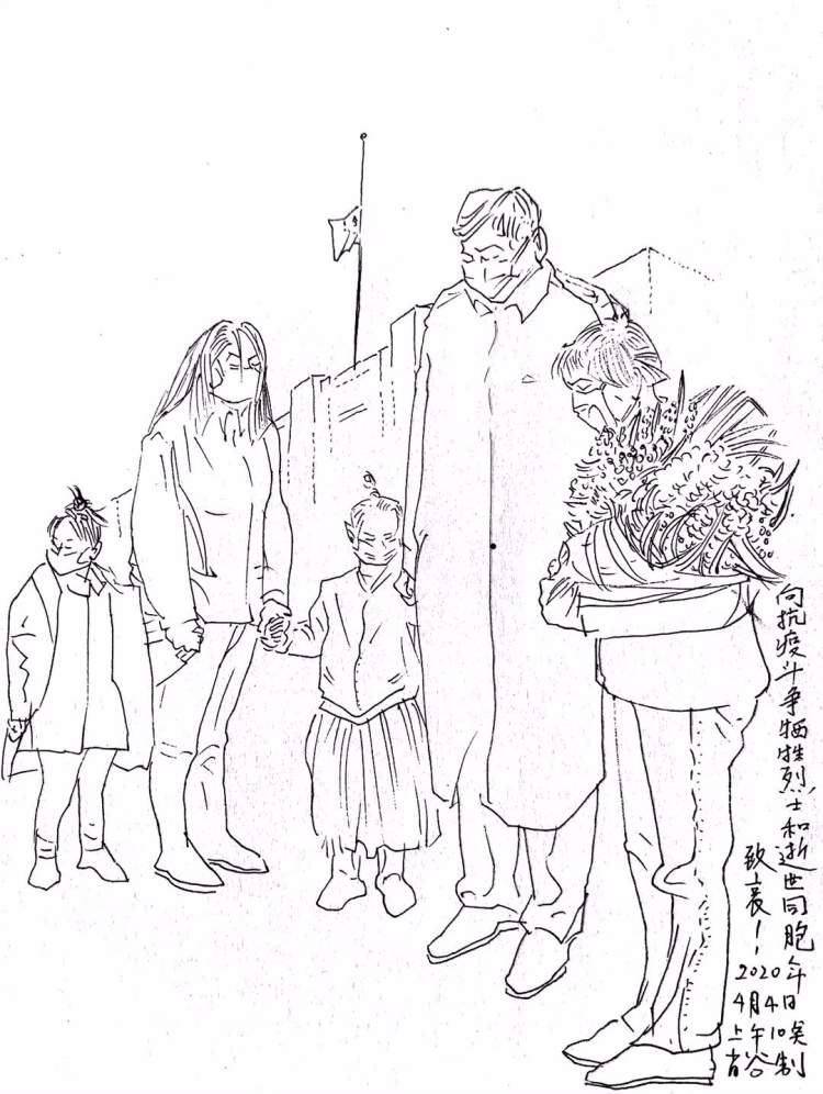 2020年4月10日上午,上海油画雕塑院原院长、著名艺术家肖谷夹着一个大盒子来到了上海历史博物馆,他是来向历博捐赠他最新创作的31幅白描速写《疫情记事》的。