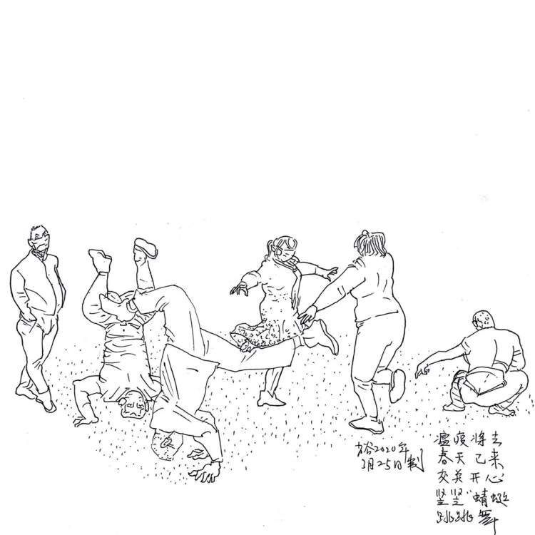 2020年的这个春天,由于新冠疫情的影响,大家经历了“宅家”、“停摆”到“复工复产”,人们的生活发生了极大的改变。肖谷以一个艺术家的敏锐及时捕捉到了这种日常生活变化中的艺术切入口,他连续创作出31幅速写作品,冠以《疫情记事》。