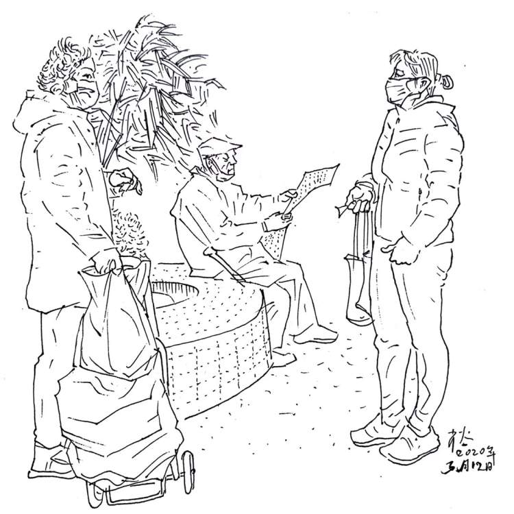 在这些速写作品中,肖谷以平凡人的视角打量平凡的生活,以朴素大方的表达方式讲述这个特殊春天里上海百姓的日常故事,很快就在社交媒体上引起了大家的兴趣。
