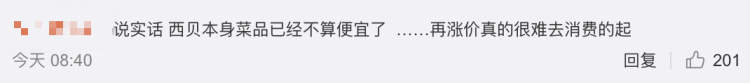对于一些小餐饮涨价没有人关注,海底捞、西贝莜面村等知名品牌涨价却“受到围攻”的两相对比,一名网友表示:“毛利少的小餐饮扛不住了涨价很正常,但对于一些大家本来就觉得贵、利润高的品牌这时候涨价,大家就比较难理解了。”