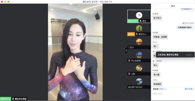 镜头前,朱洁静以手势舞《听我说谢谢你》拉开了近1个小时的课程。