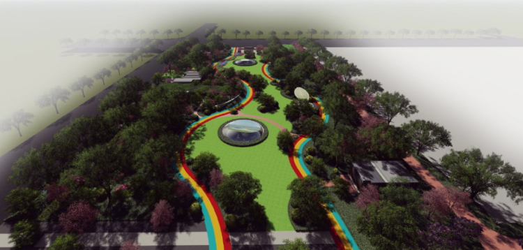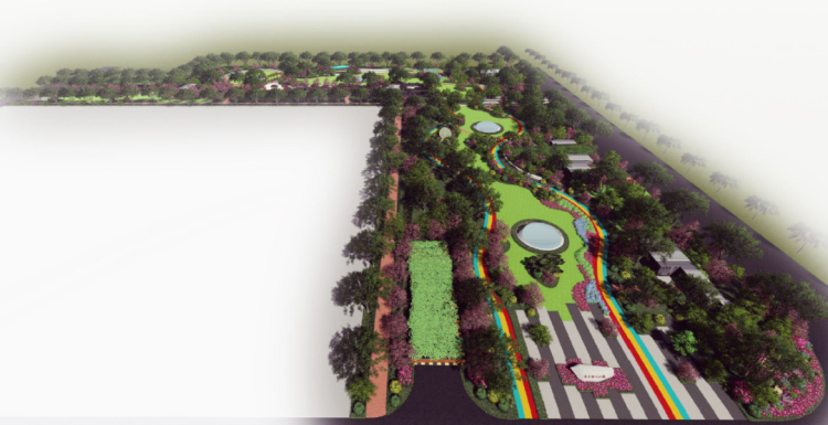 昆水街绿地及地下车库新建项目,东至规划道路、南至文翔路、西至中德路、北至平原七村。绿地设计灵感来源于麦浪,设计过程中将绿地、森林、麦田等元素应用其中,体现自然之美。