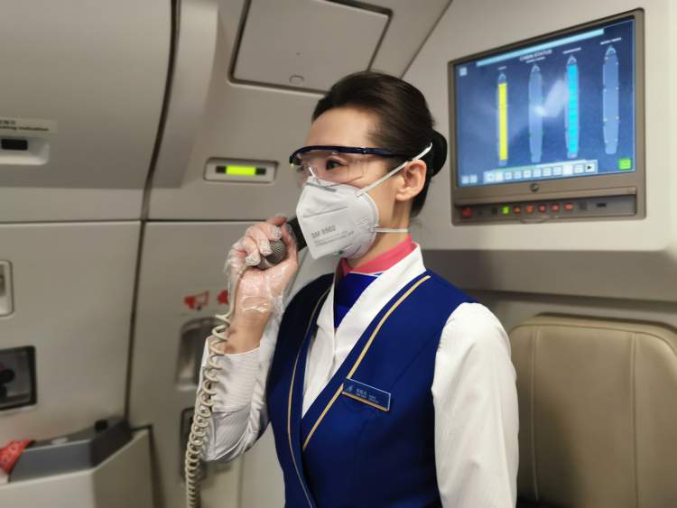 同时,南航严格做好机组成员的自身防护和客舱清洁消杀,防患于未然,阻断客舱内的传播渠道。机组人员出发前检测体温,执行航班期间乘务员全程佩戴口罩、手套。同时,对机上毛毯、耳机等公共物品不重复使用,停止配备餐单、酒水单、报刊杂志等,最大限度减少人员接触导致的疫情风险。对飞机客舱,每个航程结束之后就进行消毒,飞机结束全天飞行回到基地后都要做预防性彻底消毒,机务人员还加大了更换飞机空调再循环系统风扇气滤的频率,为飞机换上新“口罩”。