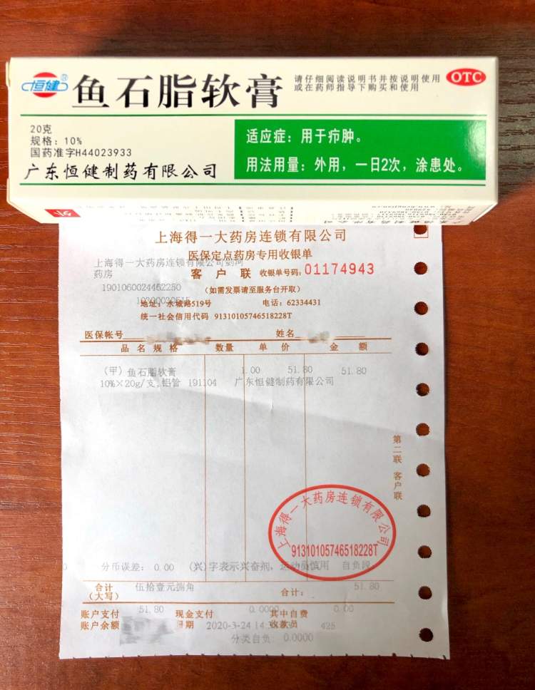 近日,市民刘女士来到家附近的得一大药房,准备购买一款名为“鱼石脂软膏”的药品,从店员处得知可以刷医保卡后,刘女士根本没有询问价格,就刷卡付了钱,在她的印象里,这个药“大概也就十多块钱。”