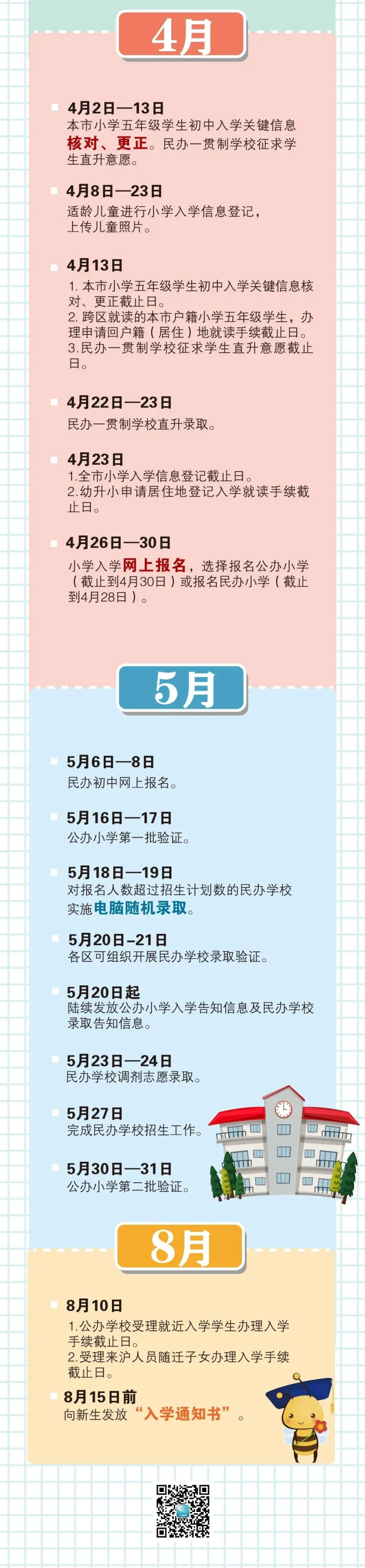 小学五年级学生家长须在学生就读小学,核对“入学报名系统”(https://shrxbm.edu.sh.gov.cn/)中的关键信息,如户籍地址、居住地地址等,并填写家长手机号码,作为家长接收初中入学信息的联系方式,获取《上海市初中入学信息核对表》。