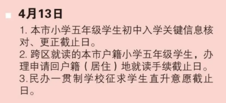 4月13日也是民办一贯制学校直升意愿征求截止日,如果没有选择“本校直升”意愿,就不能被本校直升录取。