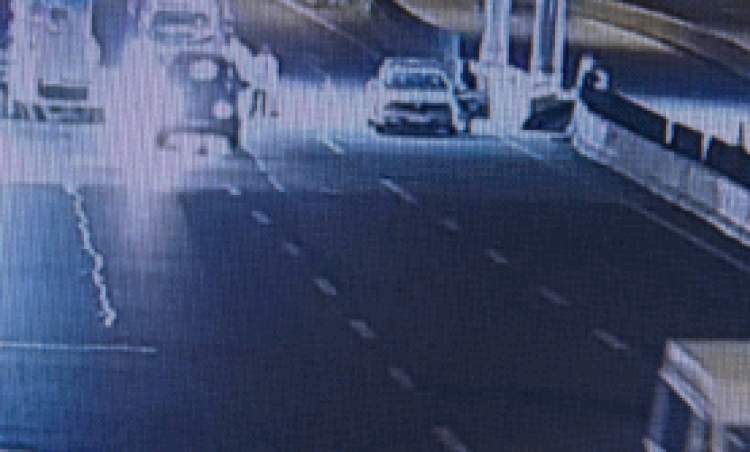 该车司机在被要求进行酒精测试时,拿出一块牌子晃了一下,便径直开车闯卡逃离。▼