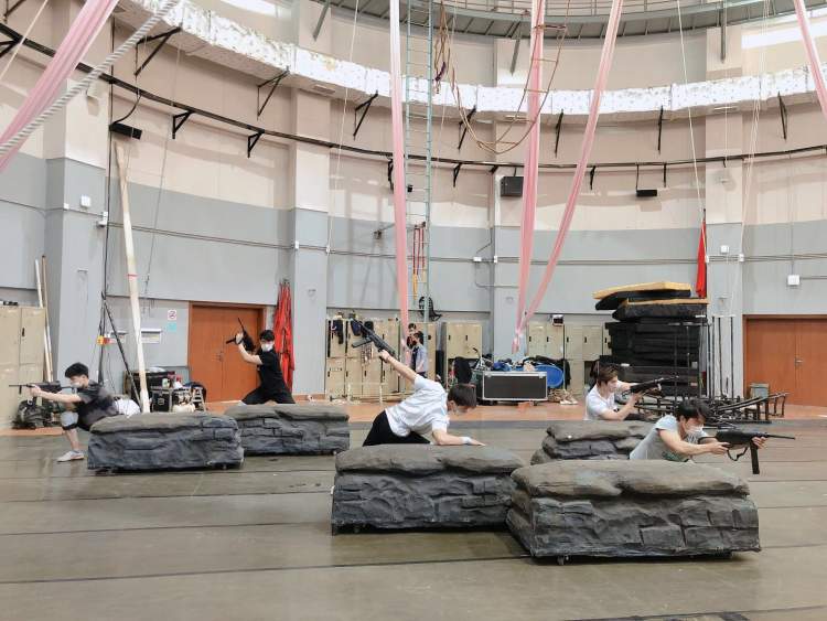 “你们两个, 换位的时候要带上情绪,注意眼神。每一个动作都要慢一点,把它放大,才能显出军人的气势。”导演正在给大家讲解动作。一个举枪移位的简单动作,他们已经练了五六遍。
