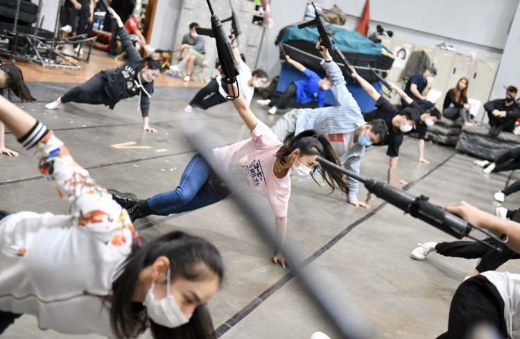 3月初,杂技团恢复正常排练,100多名演员被分成了三组,日常训练通过分组和错峰排练的方式进行。