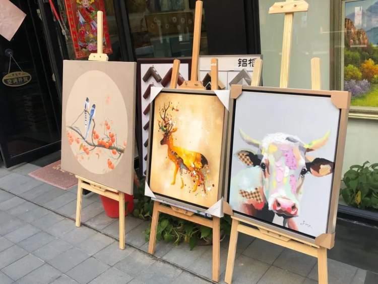 “画作不只是按照尺寸来计算价格的,还要看作者和质量,有的大尺寸画作只要几百块,而有的只有小小一幅却要上千块。”一家店的老板告诉小编,每个人的品味不一样,对作品的感受也有所不同,重要的是眼缘。画作虽美,但几乎所有的店里都写着禁止拍照的字样,小编只能在外面拍一些展示出来的画作。