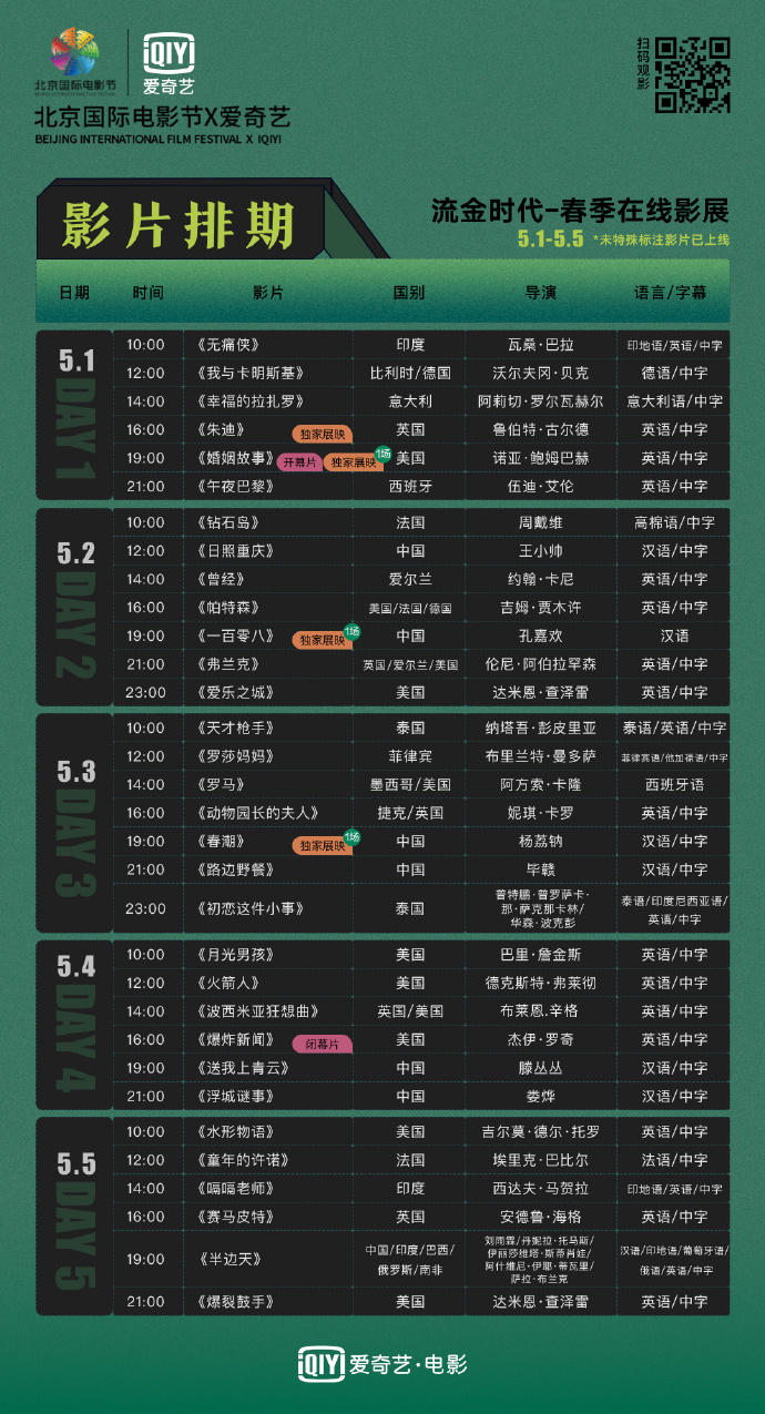 昨天,北影节宣布与爱奇艺合作,将举办一个北影节“春季在线影展”,在五一长假期间,线上播放影片。