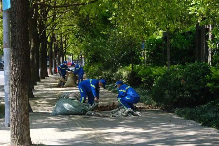 城市要美,花草的照料是必不可少的。环卫工人按照规范对马路两旁的行道树、草坪等绿植进行修剪作业。对枯死枝叶及影响行人行走、遮挡车辆视线的树木进行清理,保持城市整洁、景色常驻,做到“人在城中”“城在园中”。