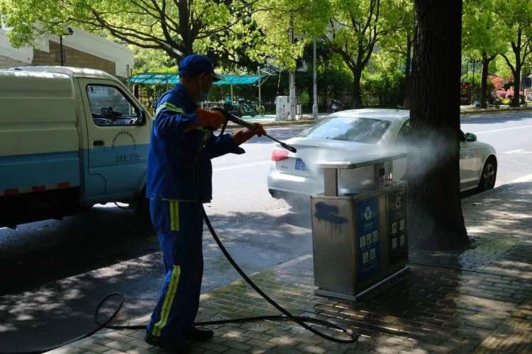 环卫工则人精心地对道路隔离护栏、垃圾桶、公交站牌及灯箱广告牌等“城市家具”依次进行冲洗擦拭,确保这些公共设施上无浮尘、无污染物,清新亮丽的街面是给居民百姓的最好礼物。