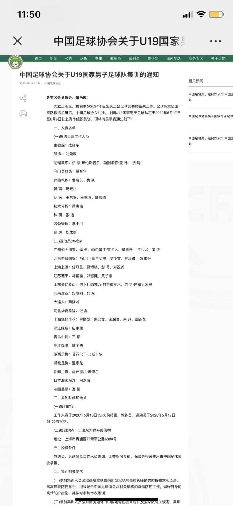 今天,中国足协公布了U19国青队集训名单,这支队伍肩负着冲击2024年巴黎奥运会入场券的重任。据悉,球队将于5月17日至6月6日在上海进行集训,球队的主教练是成耀东。