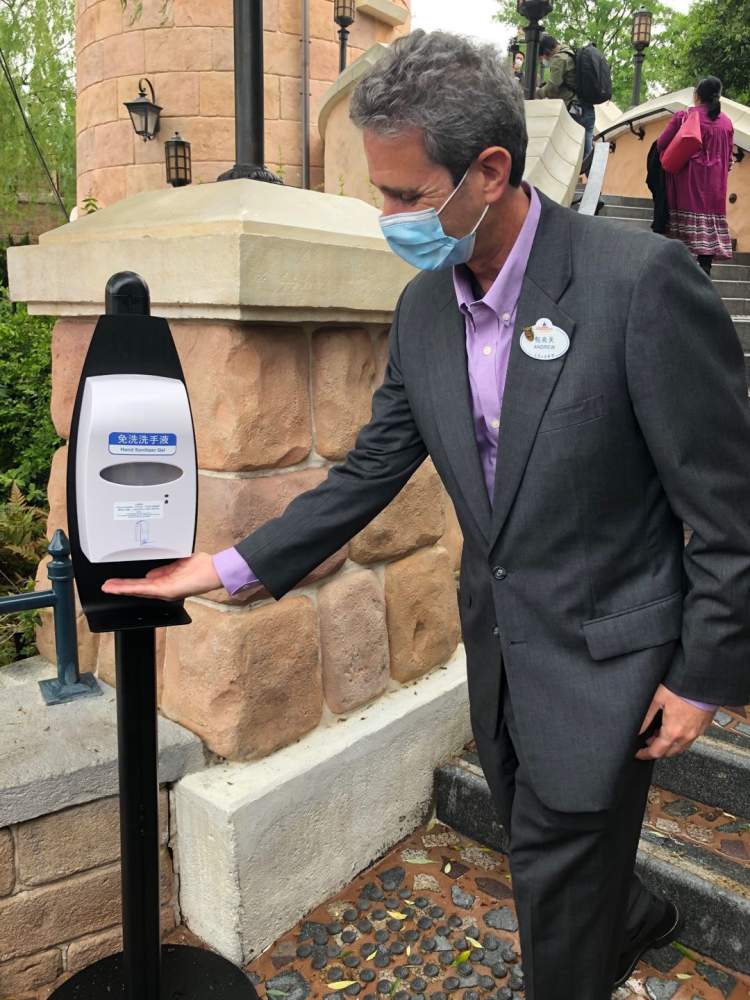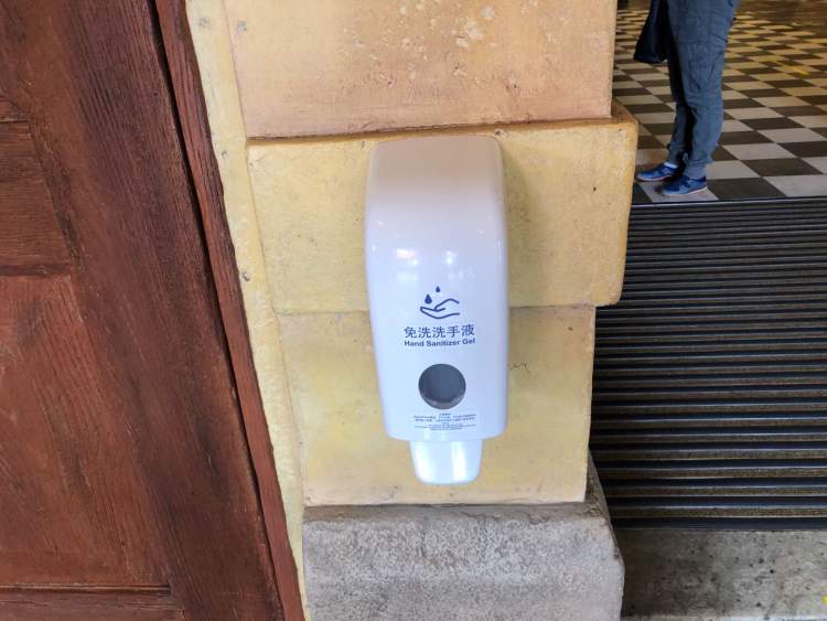 另一个细节是,在景点出口、餐厅入口、收银台等处,都配备了免洗洗手液,希望游客勤洗手,保持卫生。