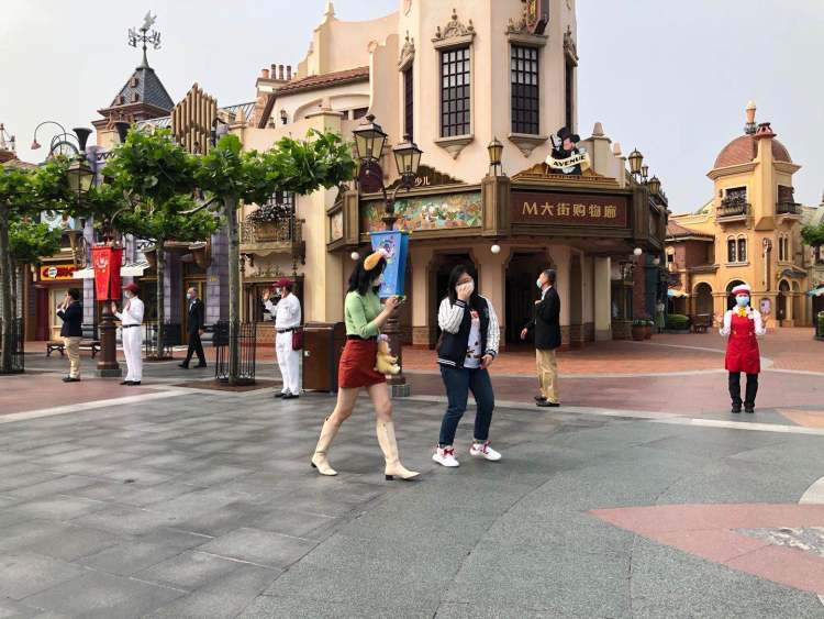 上午9点,首批游客经过安检、测温、出示健康码、预约码、身份证等一系列程序之后,进入迪士尼乐园。迪士尼公主、漫威系列电影中的主角们以及其他迪士尼朋友,集体在乐园正门上方欢迎游客的到来,乐园各景点的部分演职人员则来到米奇大街,向游客挥手问好,用迪士尼特有的方式迎接闭园100多天后再次到来的游客。