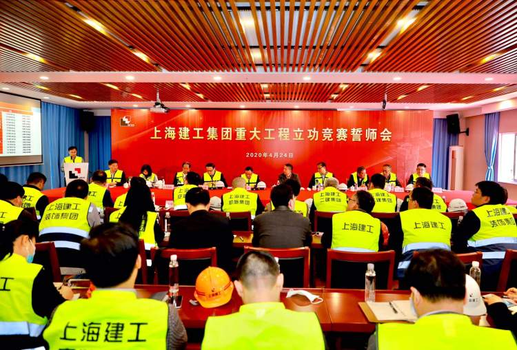 上海建工集团今年承担了新开发银行总部大楼、 2021年第十届中国花卉博览会主体场馆工程、临港新片区两港大道、北横通道、龙东大道等占上海全市56.6%的86项重大工程建设的繁重任务。各参建单位项目部负责人在立功竞赛承诺牌上纷纷签名,庄严承诺保质保量保节点完成好各项重大工程建设任务。