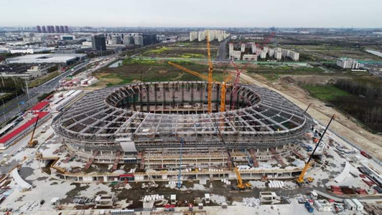 作为国内首座为中超俱乐部量身打造的现代化专业足球场,计划今年“9.30”基本建成。这座总建筑面积13.93万平方米、拥有33765个固定坐席的足球场,建设者有1300名。在完成足球场庞大的屋盖钢结构合龙成型和主体结构的基础上,目前正抓紧看台板吊装与设备安装等的最后冲刺,并开始进入装饰装修和室外总体景观施工阶段,确保今年“9.30”基本建成浦东足球场。