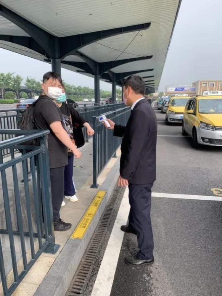 为确保游客能够安全、有序离园,强生全力做好离园通道的管控,要求现场调度人员全员佩戴口罩并挂牌上岗,对每位乘客做好体温测试,提醒乘客佩戴口罩出行,并在现场配备应急口罩,免费提供给司机和游客。
