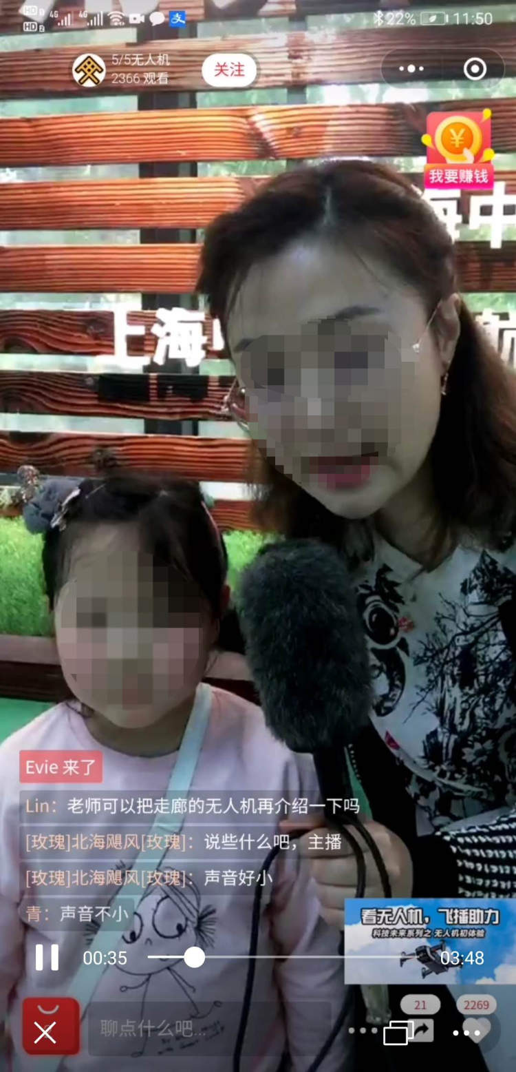 根据活动介绍,这场活动以参观无人机飞行基地为主,整个参观过程会被同步直播。主办者介绍,这场“飞”“播”活动,能够让小朋友学会“边玩边说”,成为“镜头前侃侃而谈的小主播”。