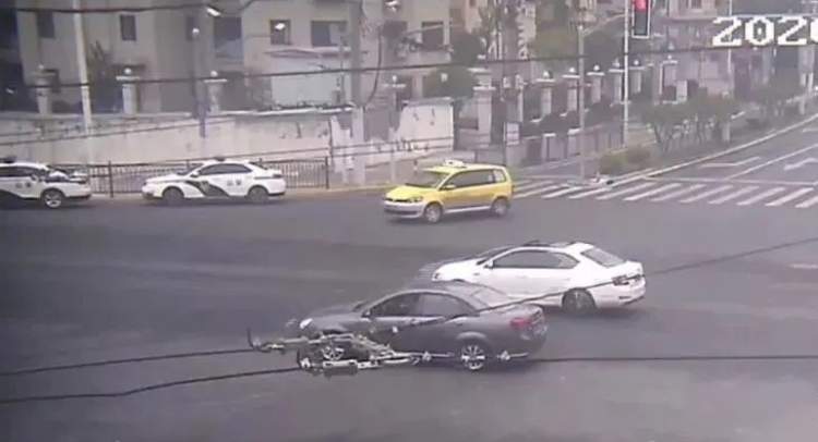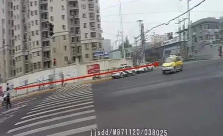 杨浦区周家嘴路内江路路口的公共视频显示,事发时,该名驾驶员驾驶的出租车正准备从内江路右转进入周家嘴路。而这个路口的右转弯是有专门信号灯控制的,但是驾驶员陆某没有跟随红灯指示,直接闯灯驶出路口。