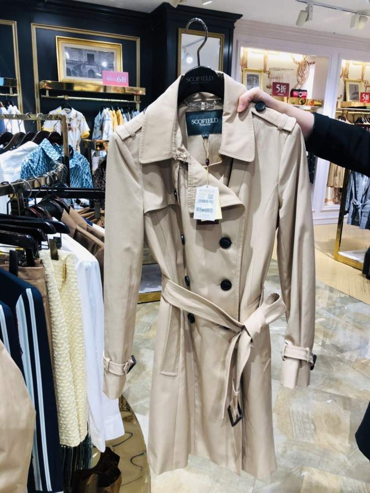 在SCOFIELD,一件米色双排扣的经典款风衣原价2380,5折后1190元,用10元团张188元券,风衣实价1012元!