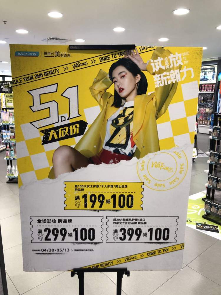 逛累了商场,周到君来到了B1层,这里有很多餐饮小铺,本想买杯饮料喝一喝,却不曾想被屈臣氏铺天盖地199-100的海报所吸引,进去一看,周到君平时买的很多东西居然都参与活动。额外还可以参加中信、平安、广发信用卡的满减活动。同时,对于新入会的会员来说,还可享受多倍积分的优惠,要知道屈臣氏的积分在每个月的5号,是可以当现金来使用的。
