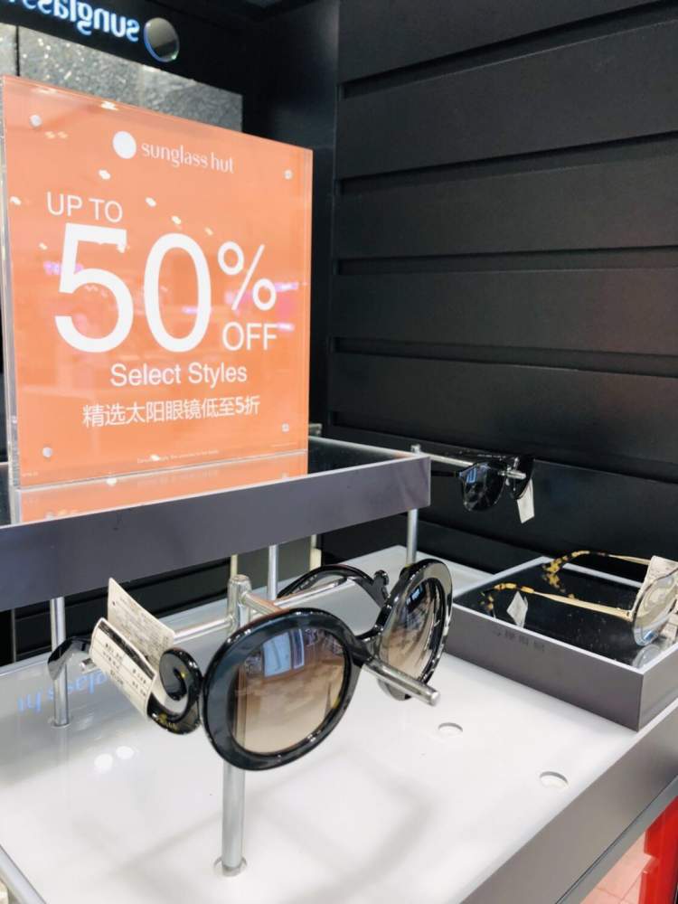 除了5折的特价款墨镜值得好好淘一淘外,店内的部分新款眼镜也参加“第二副6折”的给力活动,周到君给自己和家人分别挑了一副Ray-Ban的新款墨镜,满意地结账走人。