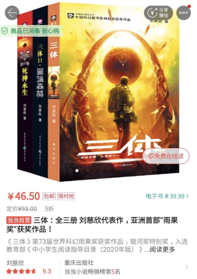 三体,5折。