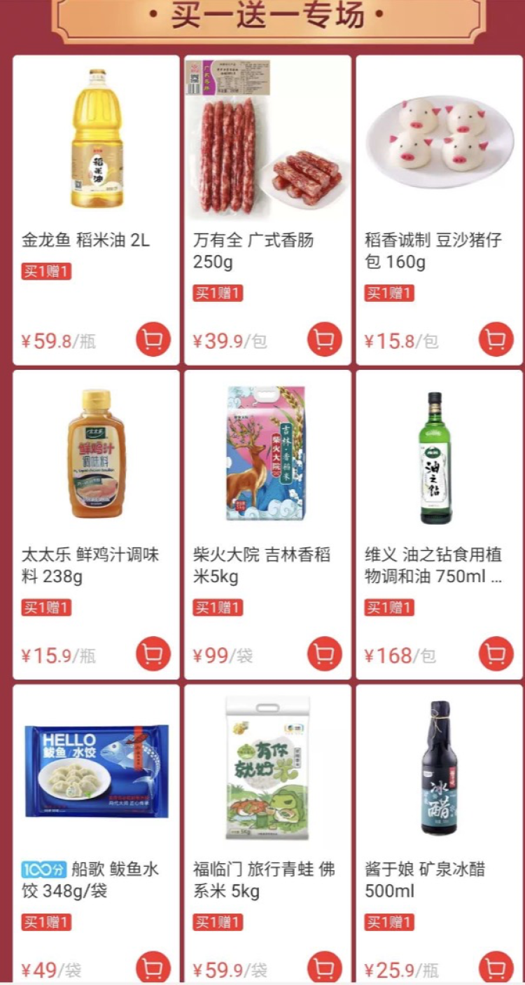 大量粮油调味买一送一。