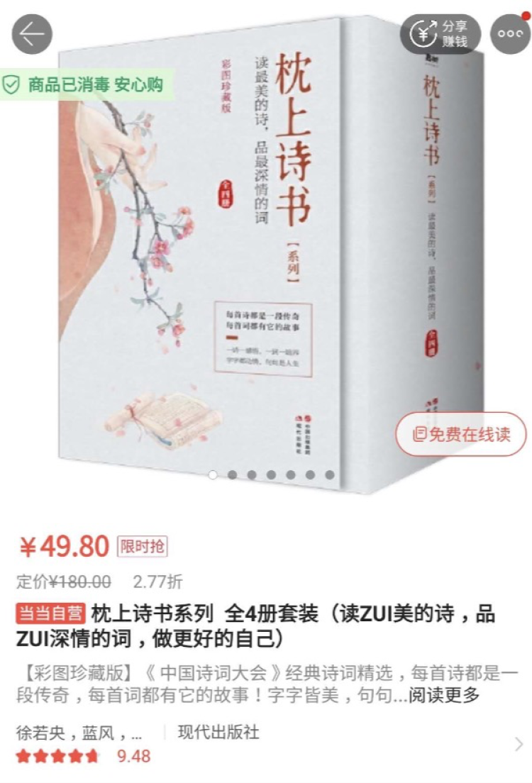 枕上诗书,2.77折。